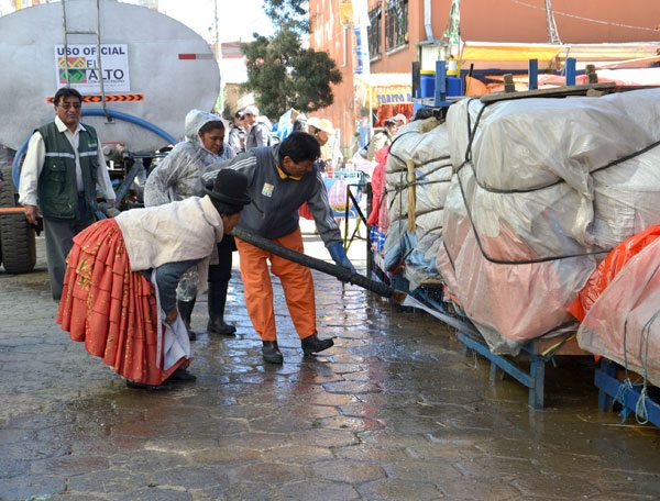 Según las declaraciones de Cachi, las actividades de limpieza son apoyadas por 10 funcionarios quienes se encargan de los trabajos en centros de salud, unidades educativas, mercados y otras dependencias que son parte del Municipio alteño.