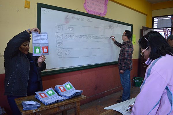 Según informes preliminares del Tribunal Supremo Electoral, en los cinco departamentos en los que fueron llevados a consulta los estatutos, es decir Chuquisaca, La Paz, Oruro, Cochabamba y Potosí, gana la opción por el No. LA...