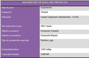 Sánchez dijo que entre octubre o principios de noviembre, de la presente gestión, se realizaría la “prueba de producción” del pozo petrolero Lliquimuni, para confirmar o no la existencia de gas y crudo en esa región.