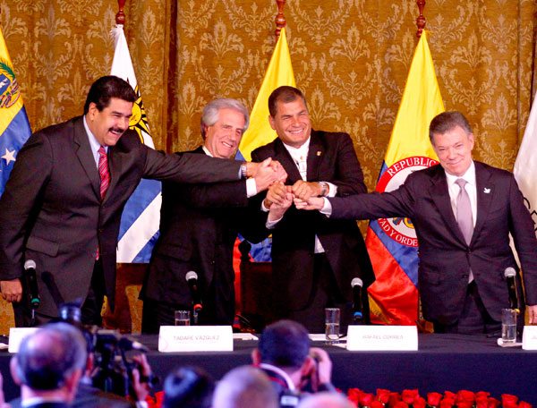 Quito.- Los presidentes de Colombia, Juan Manuel Santos, y de Venezuela, Nicolás Maduro, acordaron ayer, durante una reunión en Quito, el retorno de sus respectivos embajadores y la apertura de una investigación sobre la situación de la frontera común.
