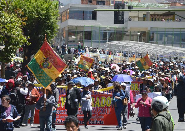 “Estamos pidiendo el cambio total del Código Tributario porque atenta contra nuestras fuentes de trabajo. Los gremiales trabajamos de domingo a domingo, pero el Gobierno a través del ministro (de Economía), Luis Arce, e Impuestos nos cobran multas exorbitantes. Los aranceles han subido en un 100 y hasta en un 200%, estamos pagando de 10 mil a 15 mil dólares”, afirmó Elizabeth Fuentes, una de las marchistas.