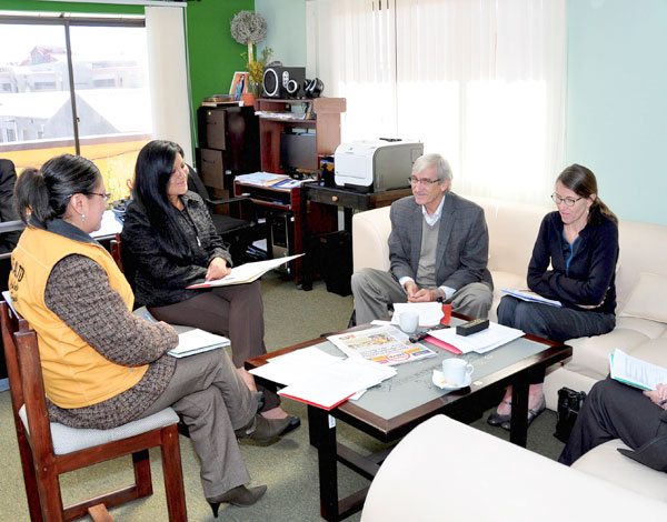 La alcaldesa Soledad Chapetón y el embajador de Suiza en Bolivia, Peter Bischof, sostuvieron ayer una reunión para tratar temas como el transporte público, salud, educación, violencia contra la mujer y el tema de desarrollo económico, donde la entidad internacional comprometió su colaboración.