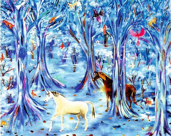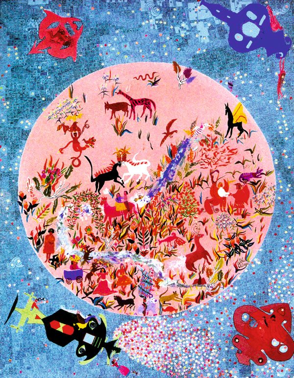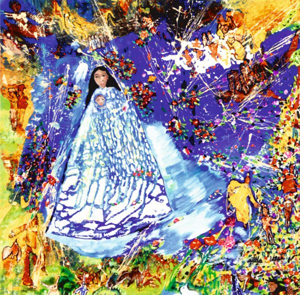 “Mi pintura es una puerta abierta a la naturaleza viva con personajes que existen y que están arrancados de un sueño. Personajes deslumbrantes, azorados, con ojos abiertos mirando el mundo y al más allá. Sueñan con la naturaleza y todo es paz y hay espacio para todos. Los animales se reproducen y el sol ilumina por siempre y la luna arrulla para dar cabida a los sueños eternos, donde hay comunión entre hadas, aves, vírgenes y dioses eternos que prodigan amor”.