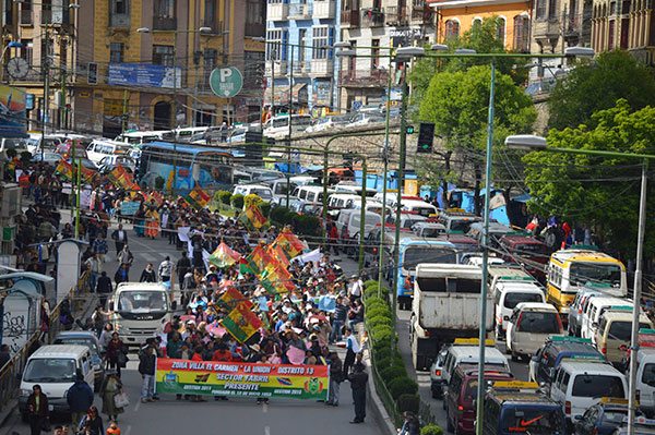 Al menos, 600 juntas vecinales de las asociaciones comunitarias de La Paz, se movilizaron ayer por las céntricas calles paceñas. Con estribillos, pancartas y estandartes y hasta petardos expresaron su rechazo, pero también manifestaron su molestia, por la poca calidad del servicio del transporte público.