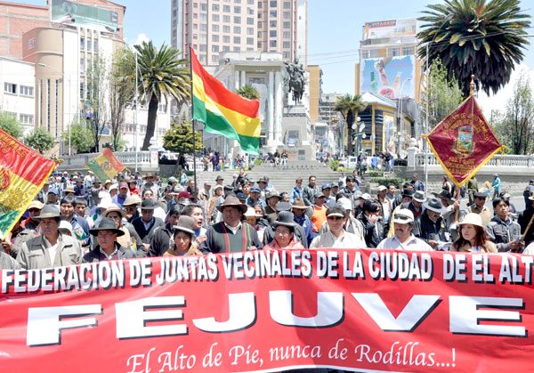 Este “Movimiento por el No” a la reelección es liderada en la ciudad de El Alto por dirigentes de la histórica “Guerra del Gas”, conocida también como “Octubre Negro” de 2003, movimiento social que expulsó a Gonzalo Sánchez de Lozada de la Presidencia del Estado y de Bolivia.
