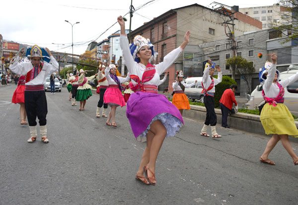 Decenas de danzarines llenaron ayer el centro paceño de música, alegría y talento con danzas que atrajeron la atención de la población.