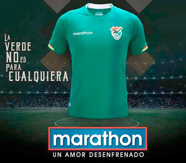 Bolivia lucirá ante Bolivia y Paraguay la nueva camiseta (fotografía anexa) , de color verde, que la firma Marathon diseñó para las clasificatorias al Mundial de Rusia 2018.