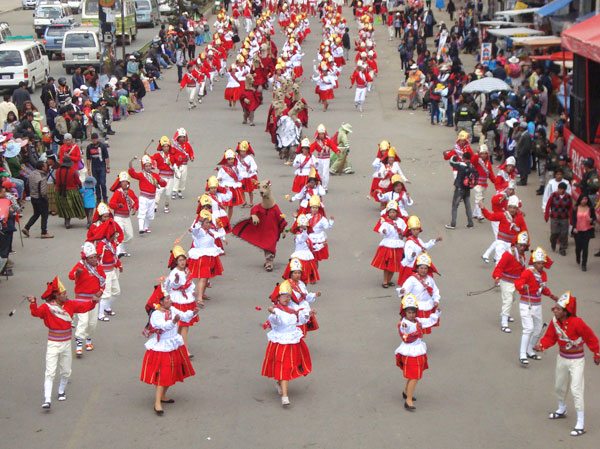 Entre otras danzas autóctonas, resaltó el ritmo de calcheños, mohoseñada, potolos, jalk’as y tinkus, que fueron deleite de los espectadores que desde muy temprano se instalaron en las graderías instaladas en la avenida Juan Pablo II.