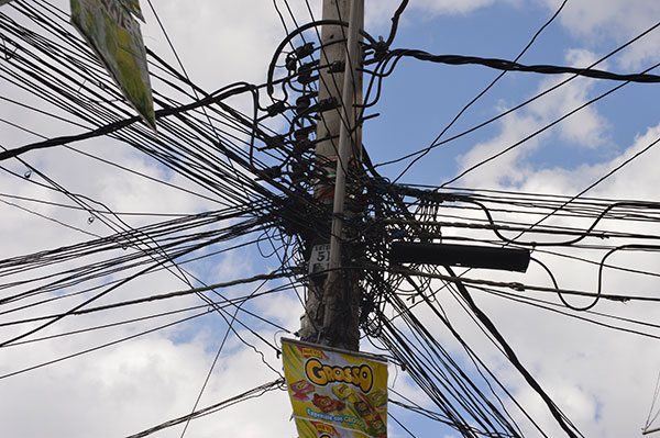 EL DIARIO pudo constatar que los cables en la ciudad de La Paz, muchos de ellos corresponden a instalaciones de internet, teléfono y televisión, están mal ubicados e incluso algunos se encuentran cerca de la superficie del piso.