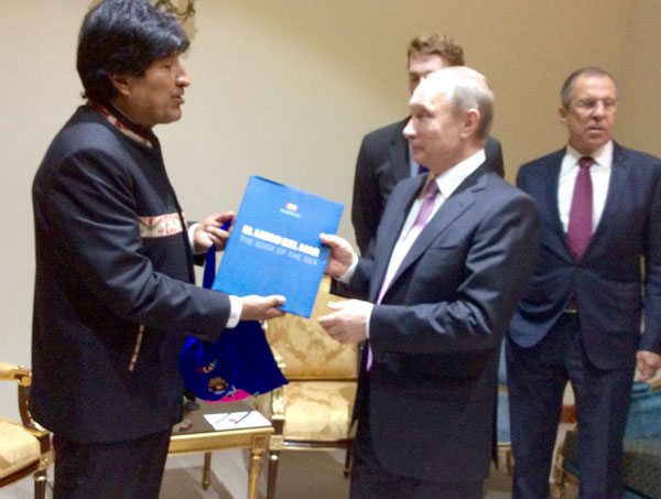 La información emitida por el Canciller boliviano se dio tras el encuentro que sostuvo Morales con el mandatario ruso con quien trataron diversos temas de interés bilateral. Morales también aprovechó la oportunidad de informar a Putin sobre la demanda marítima y el objetivo que busca Bolivia al presentar este tema ante La Haya.