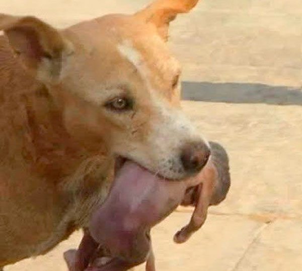 Sin embargo, una perrita encontró al pequeño entre la basura, lo tomó y de inmediato lo llevó a la casa más cercana para que recibiera la atención necesaria.