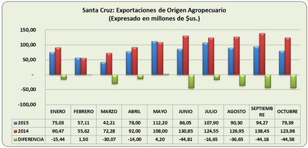 Según las cifras proporcionadas por Roda, el valor de las exportaciones de origen agropecuario, disminuyó 23 por ciento hasta el pasado 30 de octubre, mientras que la cantidad exportada, se redujo sólo en 1.5 por ciento, comparado con similar período del año pasado.