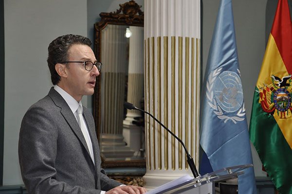 Durante su intervención, De Leo informó que, gracias al apoyo Unión Europea y la Embajada de Dinamarca, la Unodc lleva adelante, desde agosto de 2015, el Programa de Apoyo a la Implementación del Plan de Acción de la Estrategia de Lucha Contra el Narcotráfico y Reducción de Cultivos Excedentarios de Coca del Estado Plurinacional de Bolivia. Este Programa, dijo, incluye un componente novedoso de asistencia técnica legal en materia de normativas de drogas.