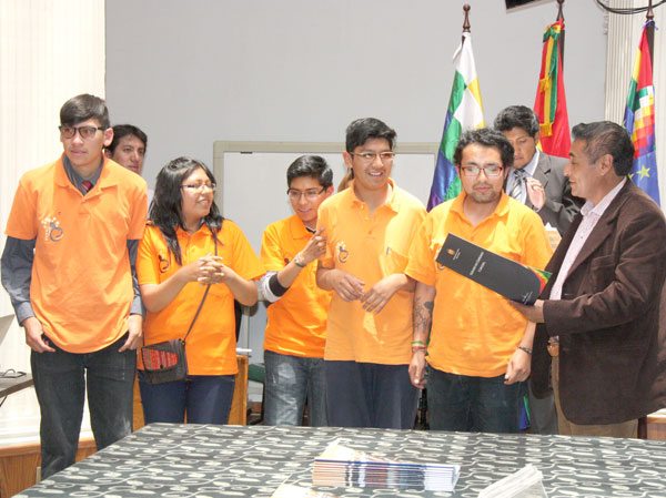 Los defensores de los animales Huellitas Bolivia también recibieron el reconocimiento de manos del asambleista Tito Veizaga.