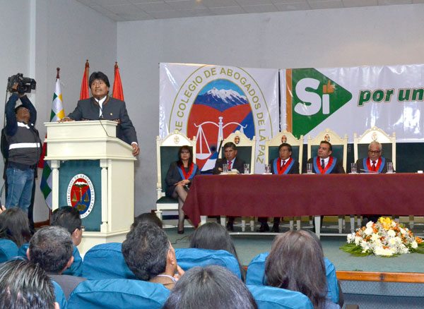 El presidente del Colegio Nacional de Abogados, César Cabrera, cuestionó el apoyo que brindó el martes la filial de La Paz cuando, públicamente, apoyaron la modificación de la Constitución Política del Estado y posibilitar la reelección de Evo Morales a la presidencia del Estado en las elecciones de 2019.