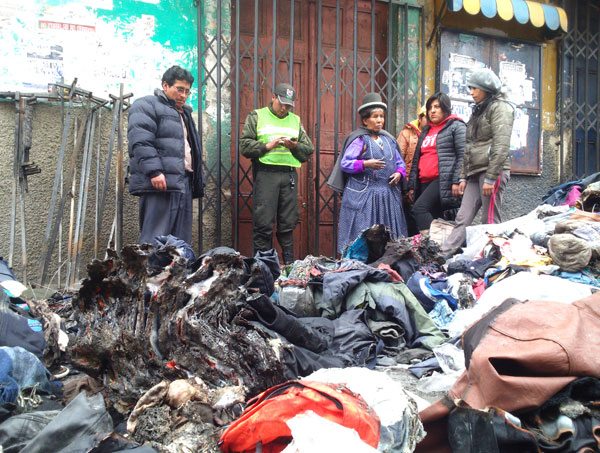 El hecho fue ocasionado por el lanzamiento de un juego pirotécnico en el inmueble de la calle Illampu No 621, donde varios comerciantes denominados “mañaneros” guardaban prendas nuevas, sostuvo la autoridad.