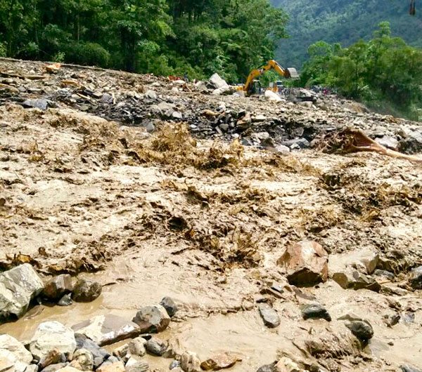 “Estamos estabilizando el talud y realizando trabajos de enrocado para estabilizar la plataforma”, indicó.