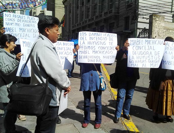 "Hace ocho años la concejal Mavel Machicado era la secretaria general de nuestra asociación y durante todo ese tiempo ella ha hecho una recaudación de 20.000 dólares aproximadamente y se lo ha llevado, ese dinero sirve para este tipo de situaciones, para los afiliados (para afectados de Huyustus)", dijo Javier Cuña, secretario General de alto artesanos.