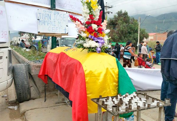 “Tenemos un compañero que ha fallecido y el Gobierno no se acerca ni pregunta cómo ha sido, pero ahora el pueblo se va a levantar, los gremiales se van a levantar. La ley 2492 (Código Tributario) nos está matando en vida”, aseveró uno de los protagonistas de la medida de protesta.