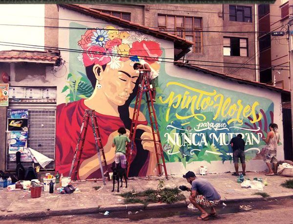a través de su página en facebook el colectivo MarTadero publicó la fotografía de un nuevo mural que formará parte de la ciudad de Cochabamba. En la imagen se agradece el trabajo de los artistas Lucas Butler, La tribu, “Henrique” Hudson quienes plasmaron la imagen de Frida Kahlo, con la frase: "Pinto flores para que no mueran". Un buen trabajo de arte urbano.