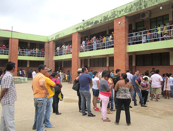 “Hemos tenido que cerrar el ánfora, a las 16.00 horas”, afirmó Vladimir Verduguez, miembro de la mesa electoral que funcionaba en el Colegio Bolívar. Hasta el mediodía, había apenas el 50 por ciento de la gente, pero después del almuerzo, los ciudadanos y ciudadanas volvieron a las mesas electorales, para emitir su voto.