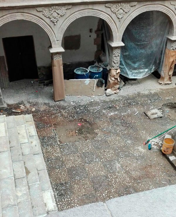 El Patio Colonial, que estaba dentro de los proyecto de restauración, por temas de filtraciones de agua además de efectos de contaminación, dejó de realizar presentaciones, esto con el fin de ser resguardado, sin embargo, en esta oportunidad se realizaron trabajos picado el empedrado para instalar una muestra y cuya autorización fue otorgada por los superiores, con desconocimiento de miembros de la Fundación del Banco Central de Bolivia, del cual es dependiente el museo