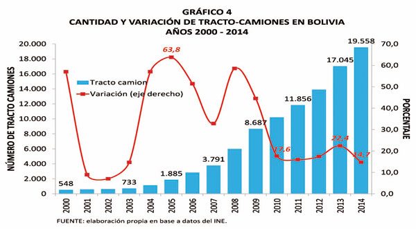 En los pasados 14 años, el transporte de larga distancia, de ida y vuelta, de puertos sobre el Pacífico, creció de forma notable. Esto determinó que en ese mismo período sean importadas 19.000 unidades de tracto-camiones.
