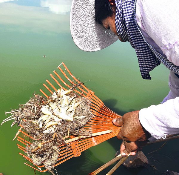 El viernes se llevó a todos los peces hasta el basurero de K’ara K’ara, pero estos reaparecieron ayer como puntos blancos en el agua en cantidades incontables. Grupos de trabajo los retiraron del agua en medio de un olor nauseabundo y los amontonaron en diferentes partes donde las moscas volaban alrededor. En algunos casos emanaban lixiviados que causan una mayor contaminación de la zona.