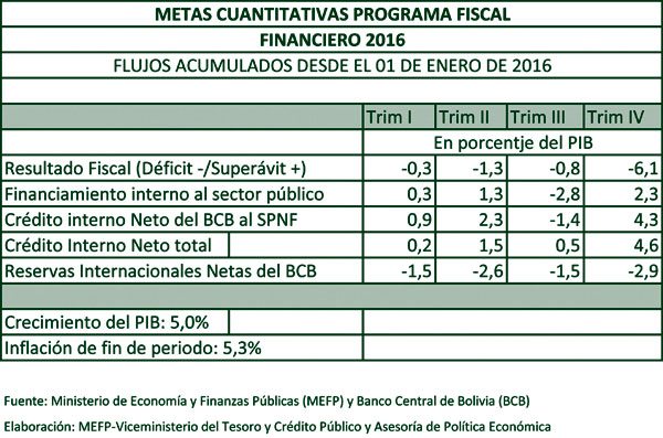 El programa financiero del Gobierno prevé también el aumento del déficit fiscal, a fin de año sería del 6.3 por ciento del producto. El año pasado, el déficit fue 6 por ciento. Arce atribuyó este incremento a los elevados niveles de inversión programados en el sector público.