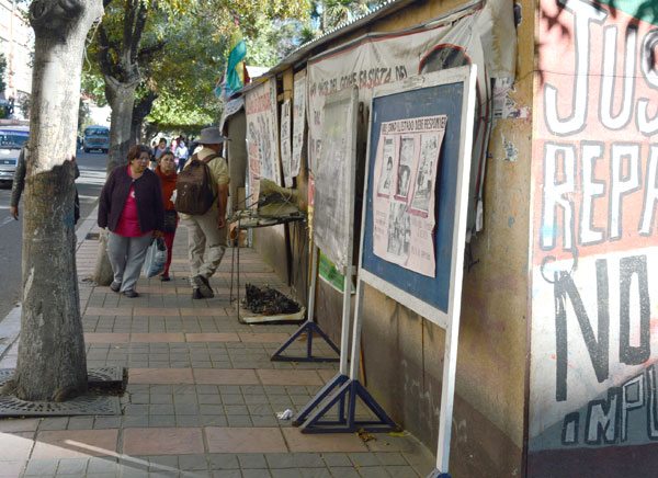 El 13 de marzo de 2012, un grupo de afectados de las dictaduras acamparon frente al edificio del Ministerio de Justicia. El grupo la “Plataforma de Luchadores Sociales contra la Impunidad por la Justicia y la Memoria Histórica del Pueblo Boliviano Sobrevivientes de las Dictaduras” demanda la indemnización prometida a los supervivientes de las dictaduras en virtud de una ley aprobada en 2004, que establece el acceso a los documentos militares de los años de dictadura y el fin de la impunidad por violaciones a los derechos humanos.