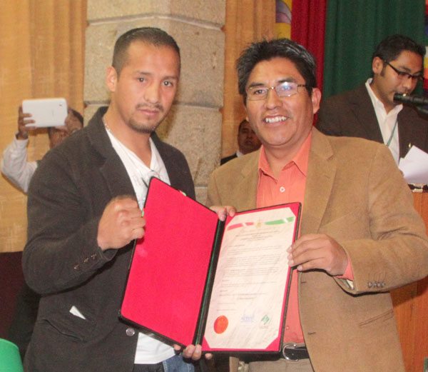 Por su parte, el pugilista paceño agradeció el reconocimiento y comprometió su mayor esfuerzo.