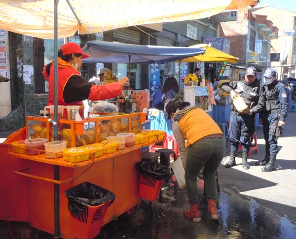 Con el propósito de precautelar la salud de la población, la Intendencia Municipal realizó ayer un operativo de control del expendio de alimentos en puestos de venta de tucumanas y rellenos situados en la avenida 6 de Marzo.