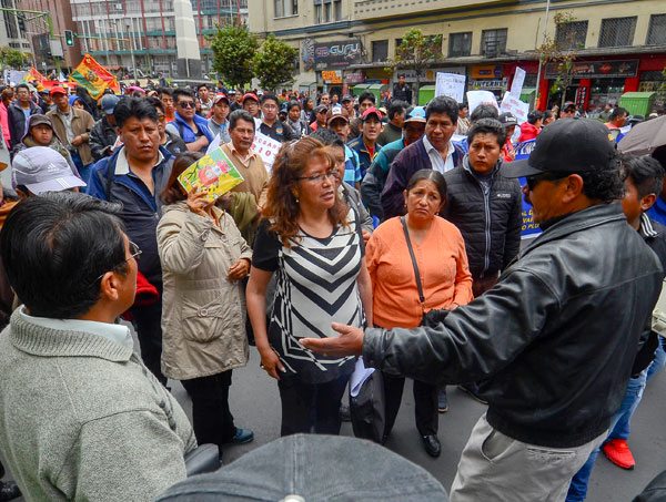 “Esta marcha es para exigir a Impuestos que deje de cometer abusos contra nuestro sector, imponiendo fuertes multas y exigimos la revisión del Régimen Simplificado para que se establezcan nuevos aranceles acordes a nuestra necesidad”, informó el dirigente Jesús Cahuana.
