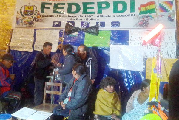 El dirigente de las personas con discapacidad, Jorge Flores, en entrevista con EL DIARIO, informó que Apolonio Gonzales (53), que participaba en la vigilia de las personas con discapacidad de La Paz, murió ayer, lunes, por presunta falta de atención médica.