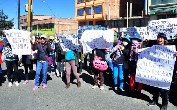 Con el compromiso de hacer efectivo el pago de sueldos devengados a las educadoras del programa Pan Manitos, la Alcaldía de El Alto resolvió las demandas de ese sector, que durante la mañana de ayer protestó en puertas del edificio municipal ubicado en la avenida 6 de Marzo, a la altura del surtidor Victoria.