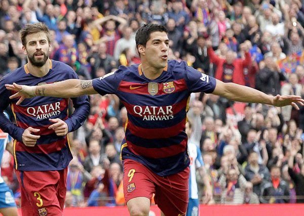 El uruguayo Luis Suárez, delantero del Barcelona, conservó sus cuatro goles de ventaja sobre el portugués Cristiano Ronaldo (Real Madrid), en la penúltima jornada de la Liga, con sendos ‘dobletes’, en un día también con tantos del argentino Lionel Messi, del francés Karim Benzema y del brasileño Neymar.