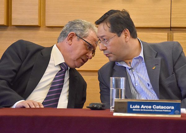 “Ese tema no vino al Ministerio de Economía”, afirmó escuetamente Arce, en conferencia de prensa ofrecida en el acto del BCB.