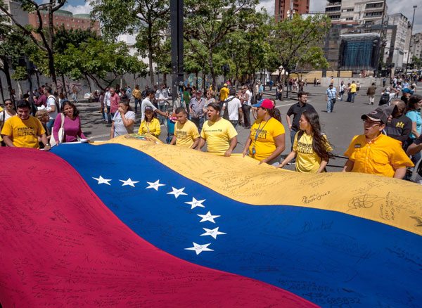 Caracas.- Centenares de opositores venezolanos se concentraron ayer en una plaza de Caracas para exigir la verificación de las firmas recogidas para iniciar el trámite de referendo revocatorio del mandato del presidente Nicolás Maduro.