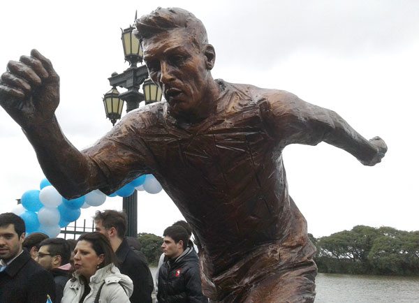 El jefe de Gobierno de la ciudad de Buenos Aires, Horacio Rodríguez Larreta, inauguró este martes en la capital una estatua del jugador argentino Leonel Messi, y se mostró seguro al destapar el monumento de que van a convencerle de que vuelva a la selección. Solo dos días después de que el delantero del Barcelona anunciase su renuncia a la selección argentina, después de perder la final de la Copa América Centenario contra Chile, la capital lo homenajeó con un monumento en el Paseo de la Gloria, una calle donde figuran estatuas de los grandes deportistas del país. “Es muy oportuna la inauguración de su estatua, es la única manera de pedirle que vuelva y nos ayude a ganar el mundial”, destacó Rodríguez Larreta, al tiempo que pidió a todos los porteños que se fotografíen con la reproducción de Messi y que suban las imágenes a las redes sociales para pedirle que rectifique. Después de reconocer la humildad del jugador, Larreta descubrió la figura, que se a une a la de los deportistas Manuel Ginóbili, Guillermo Vilas, Gabriela Sabatini, Luciana Aymar, Hugo Porta, José Meolans, Pascual Pérez, Juan Manuel Fangio y Roberto de Vicenzo, que reposan en la zona de la Costanera Sur porteña.