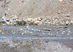 Se pudo ver también que las gaviotas esperan los deshechos contra la corriente del río en diferentes lugares de menor caudal de agua y al caer la jornada, retornar a sus orígenes en bandadas. Estas escenas se repiten todos los días, lamentablemente las gaviotas se ven obligadas a buscar alimentos en lugares insalubres para sobrevivir.