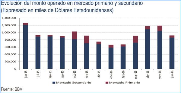 Durante el mes de junio, el monto negociado en Bolsa se situó en $us 920.24 millones, registrando una disminución del 22.59% respecto al mes anterior ($us268.52 millones menos). El 44.58% del total de operaciones se registraron en compra y venta en mercado secundario, el 48.55% en operaciones de reporto, el 6.86% en compra venta en mercado primario y las operaciones en compra venta en mesa de negociación representaron el 0.01% del total operado, según el reporte “Bolsa del Mes”, publicado por la Bolsa Boliviana de Valores (BBV).