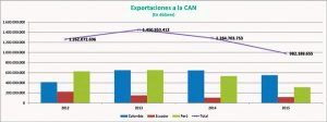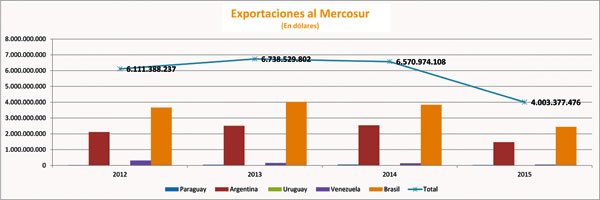 De acuerdo a datos del Instituto Nacional de Estadística (INE), las ventas al Mercosur en 2015 alcanzaron a más de 4.000 millones de dólares, mientras que la CAN registró 982 millones de dólares.