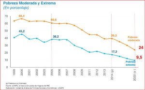 La ministra de Desarrollo Productivo, Verónica Ramos, explicó que el Ejecutivo “ha reducido la pobreza extrema de 39,3 por ciento a un 17,3 por ciento, lo que significa que más de 2 millones de habitantes han pasado a tener mejores condiciones de vida y mayores recursos, lo que hay que consolidar, es cierto, pero que ha cambiado su situación económica, es también cierto”, dijo la ministra Ramos, en el foro, ¿Qué Necesita el País para Mejorar el Clima de Inversiones? realizado recientemente en la sede de Gobierno. Sin embargo, a la población que se encuentra en tal situación debe agregarse la pobreza moderada que representa, 39,9 por ciento de los bolivianos. Si se suman ambas cifras, se tiene que la pobreza en Bolivia ataca a 56.6 por ciento de la población boliviana.