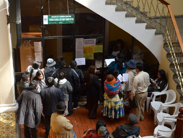 Con el respaldo de la Ley Departamental No 81, de 12 de marzo, el Gobierno Autónomo Departamental de La Paz, desde el pasado primero de agosto, se encuentra cobrando este único impuesto, que congrega a mucha gente.