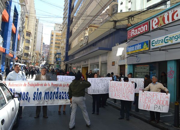 La Federación de Trabajadores de la Prensa de La Paz protestaron por el despido de periodistas en medios de comunicación, que asumieron el recorte la semana pasada, y dejó a varios en la calle.