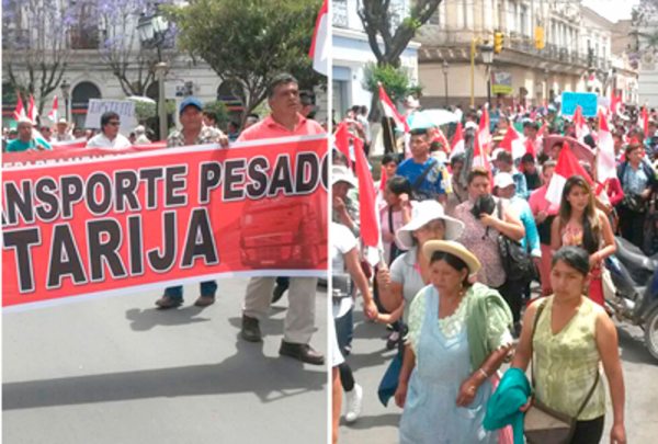 Tarija (Red Aclo).- Organizaciones sociales como del trasporte, gremiales, Federación de Juntas Vecinales, Central Obrera Departamental, Universidad y otras instituciones salieron ayer a las calles de la ciudad de Tarija en una marcha de protesta en contra del proyecto de Ley de Transferencia de recursos económicos para ocho municipios y ocho subgobernaciones.