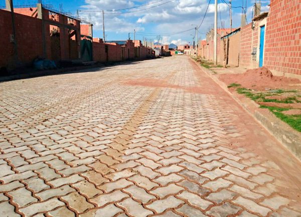 La obra que demandó una inversión municipal de 250.000 bolivianos, también involucra la construcción de cunetas en los laterales de 25 cm de ancho, además de cordones de sujeción transversales a la arteria.