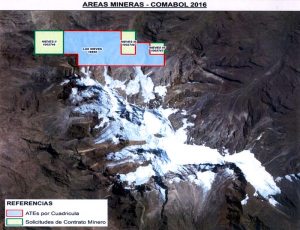 Del mismo modo, la empresa Comobol logró 70 cuadrículas mineras (cada una posee en promedio 25 hectáreas) en el Illimani.