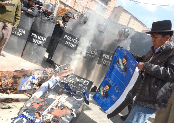 Mientras comenzaba el Congreso del Movimiento al Socialismo (MAS) en Santa Cruz, en La ciudad de La Paz, un grupo de maestros urbanos acompañados por otros sectores sociales protagonizaron una protesta rechazando la posible postulación del presidente Evo Morales y del Vicepresidente, Álvaro García, a un cuarto mandato.