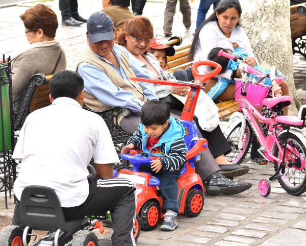 La jornada de feriado de ayer por la fiesta de Navidad fue aprovechada por las familias paceñas, en especial, los niños que salieron junto a sus padres a las calles para jugar con sus relucientes juguetes aprovechando la temperatura agradable. Muñecas, autos, patines, bicicletas y una suerte de juguetes acompañados de sus pequeños dueños, llamaron la atención ayer en la ciudad de La Paz.